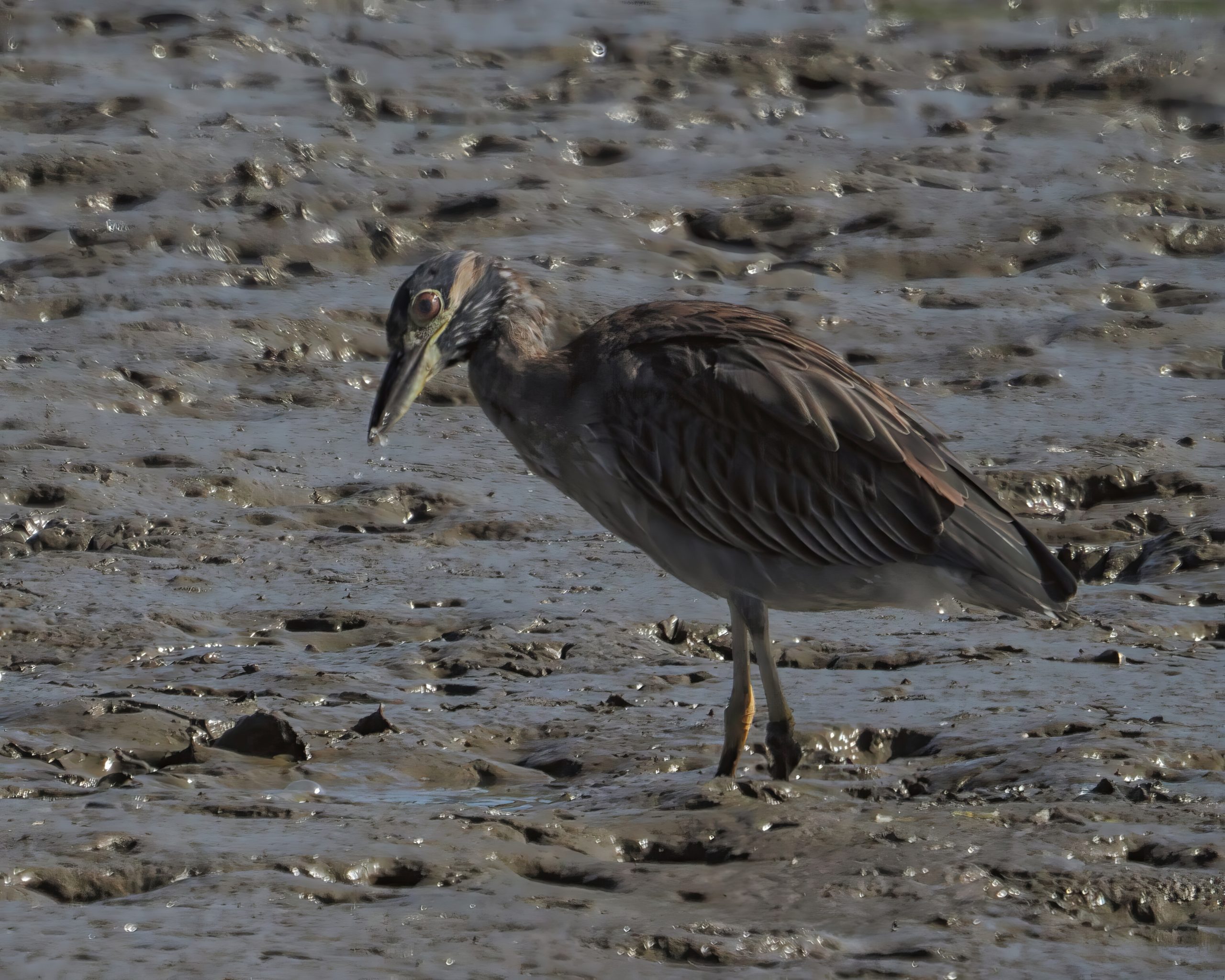 Not sure if this is Yellow-crowned or Black-crowned. Hard to tell at this age. Resoft County Park, Alvin, Texas.