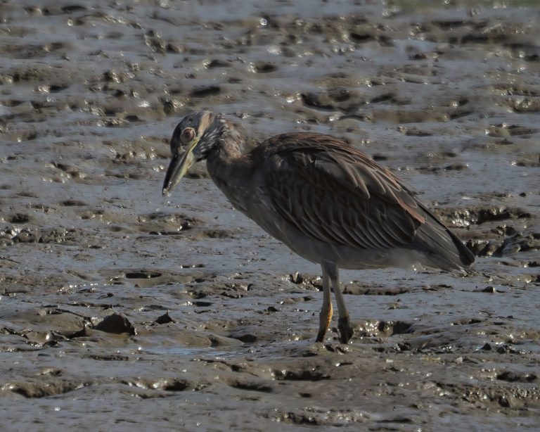 Yellow-crowned Night Heron (Nyctanassa violacea) at 17th Street jetty, Bolivar, Texas. Ardea alba. Resoft County Park, Alvin, Texas