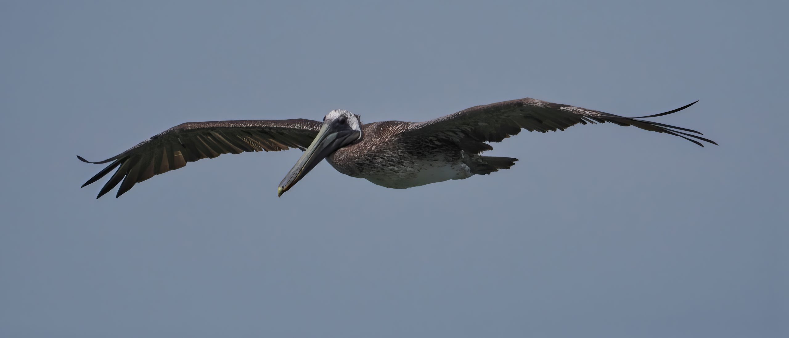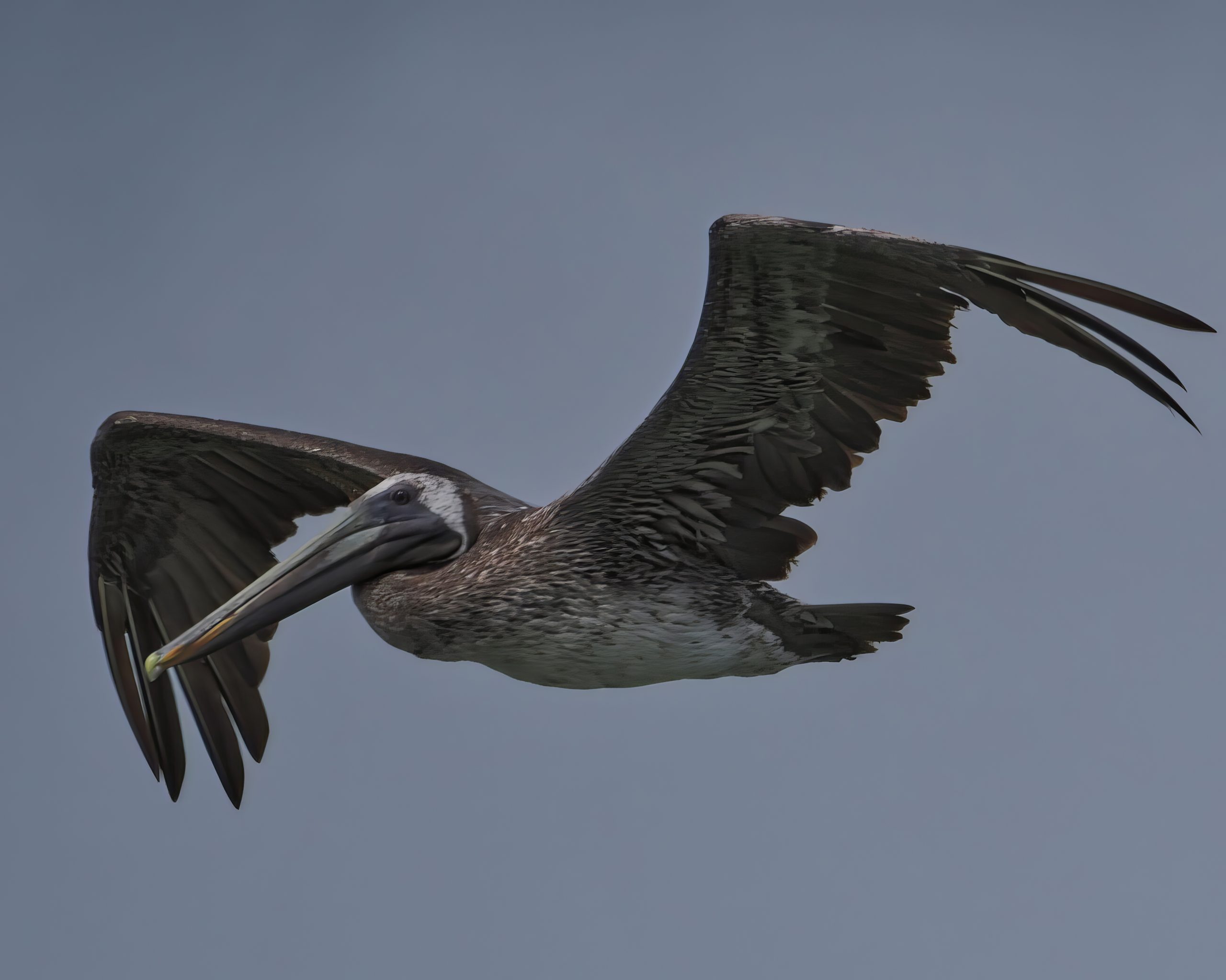Brown Pelican (Pelecanus occidentalis) over The Packery Channel between the southern tip of Matagorda Island and the northern tip of Padre Island, near Corpus Christi, Texas.