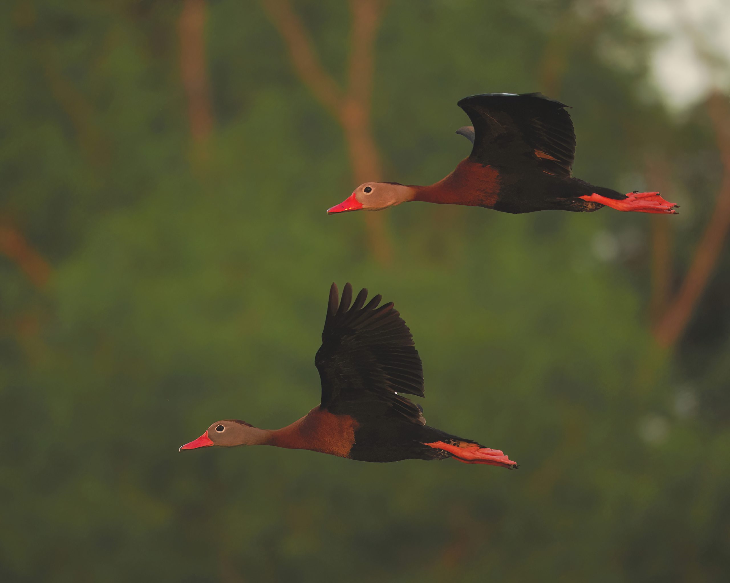 Black-bellied Whistling-Ducks Dendrocygna autumnalis in the morning light over White Lake, Cullinan Park, Sugar Land.