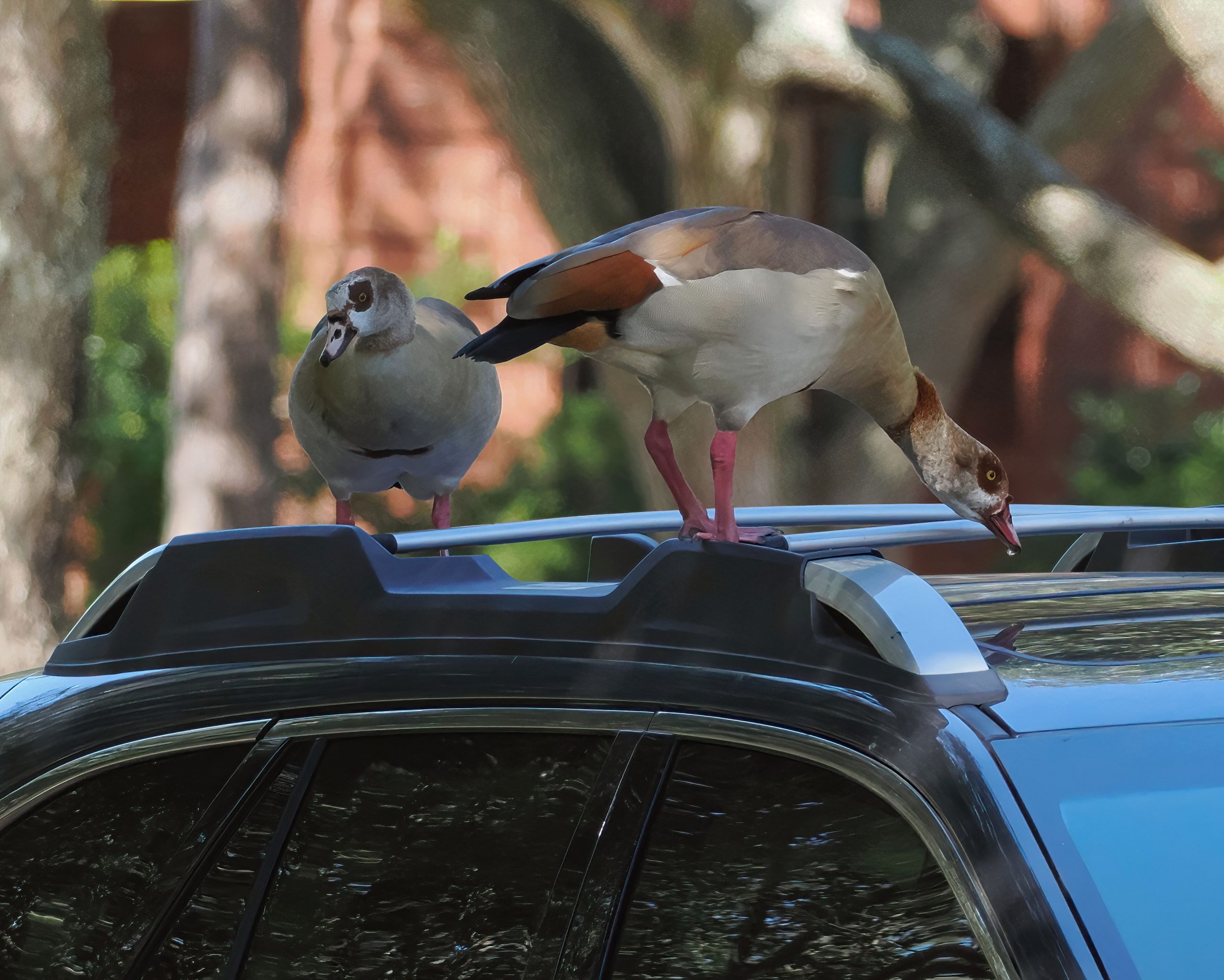 Egyptian Geese (Alopochen aegyptiaca). Edgewater Lake, Sugar Land, Texas.