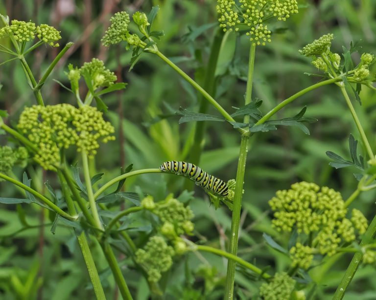 Papilio polyxenes. On Texas Prairie Parsley (Polytaenia texana), the host plant for Papilio polyxenes. Seabourne Creek Nature Park, Rosenberg, Texas.