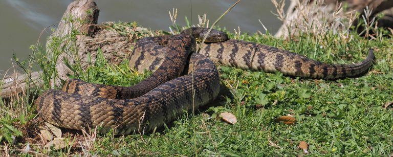 Nerodia rhombifer. Nonvenomous. Native to Texas. Eats venomous snakes, but also ducklings. Resoft County Park, Alvin, Texas.
