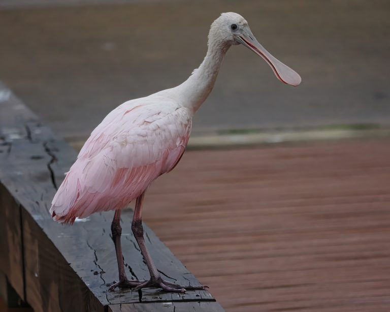 Getting around the Riverstone Wetlands. Roseate Spoonbill (Platalea ajaja). Sugar Land, Texas.