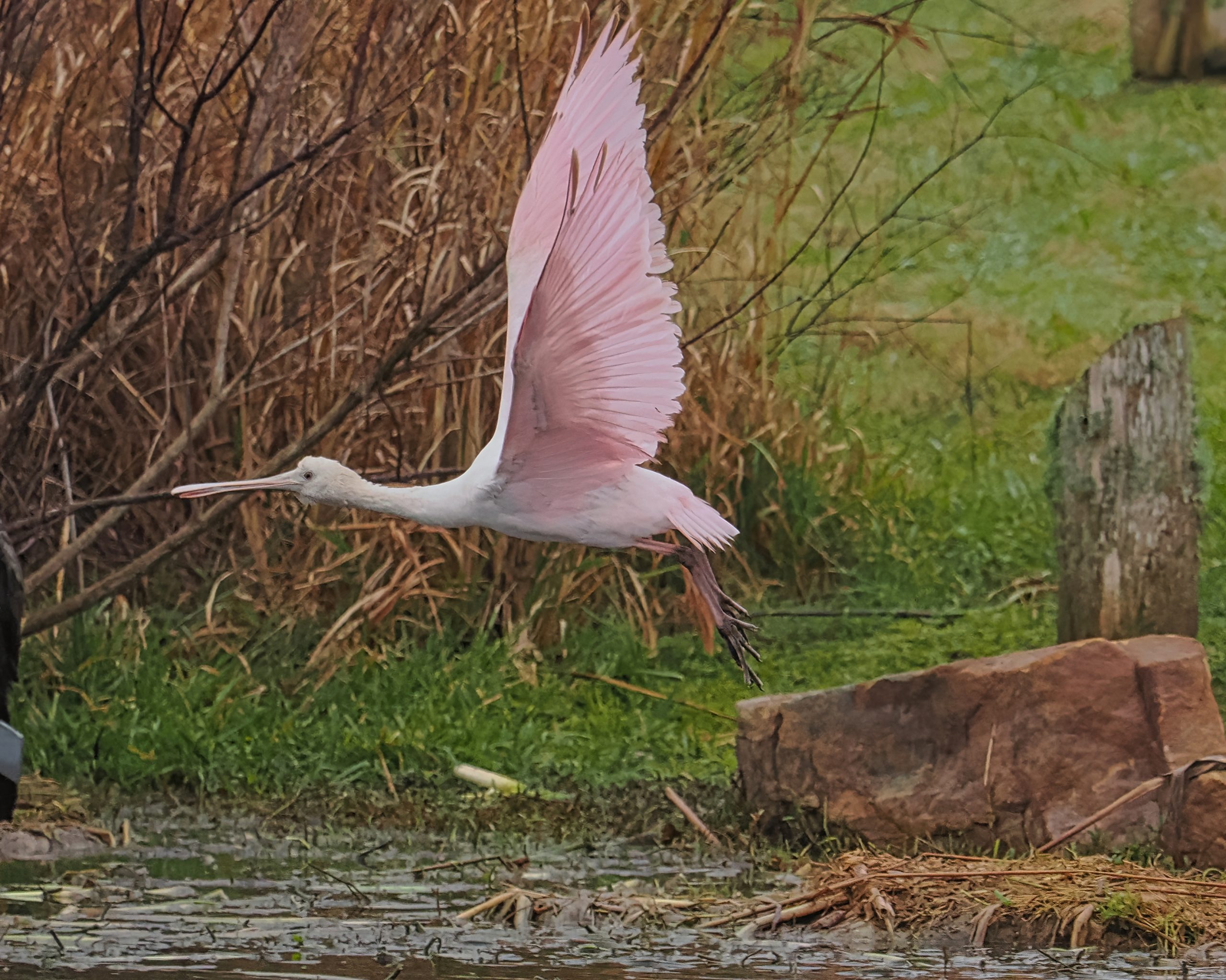 First Roseate Spoonbill (Platalea ajaja) seen (by me) in Riverstone Wetlands in 2023. Sugar Land, Texas.
