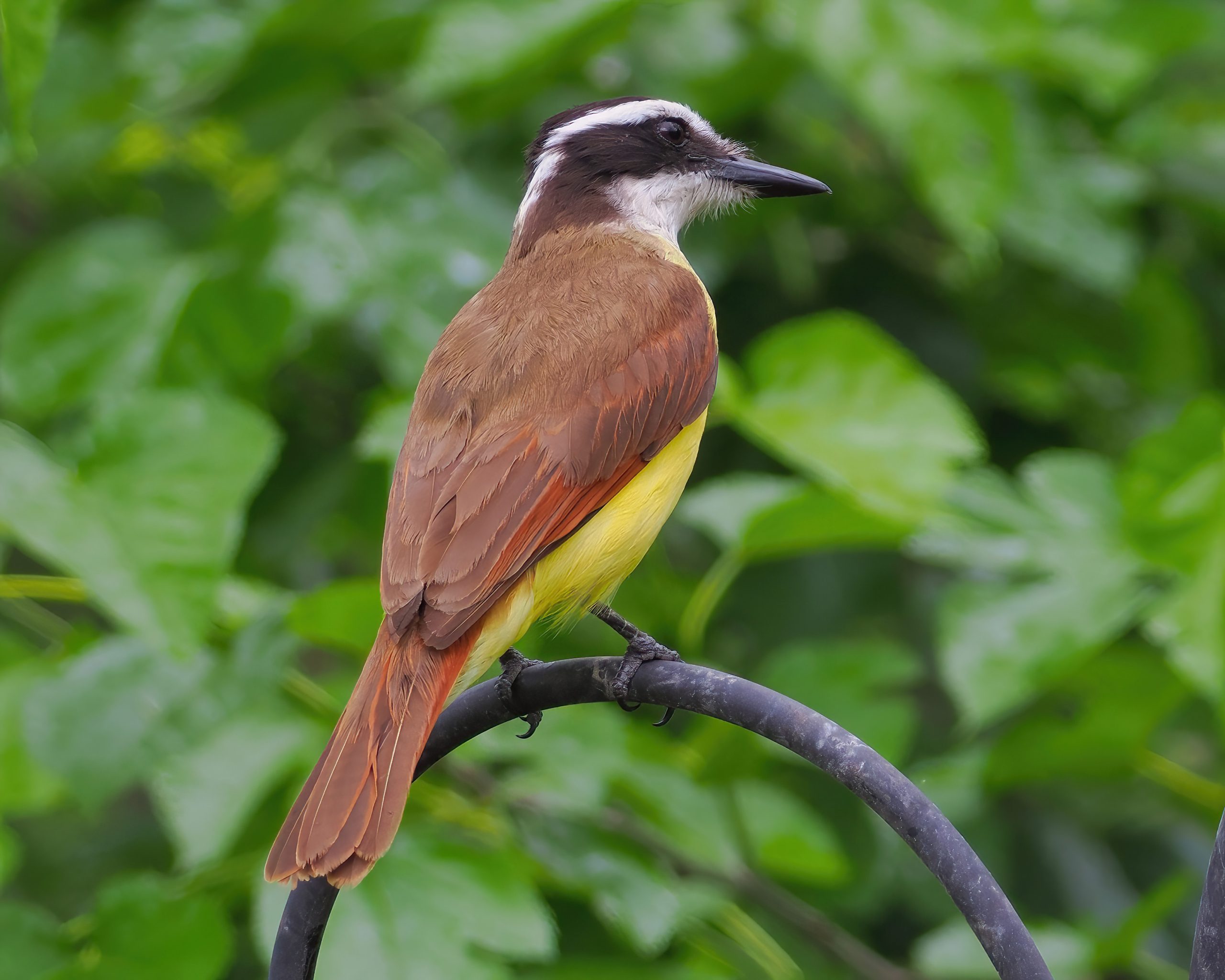 Pitangus sulphuratus. Native to the Rio Grande Valley in Texas to Northern Mexico and also in Belize, the Great Kiskadee is a flycatcher. Found at the National Butterfly Center, Mission, Texas.