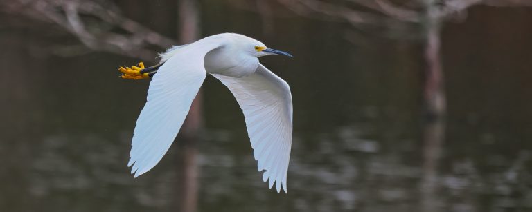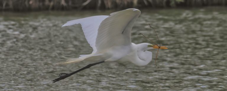 Just a Great Egret in flight. But more branches are coming up. It
