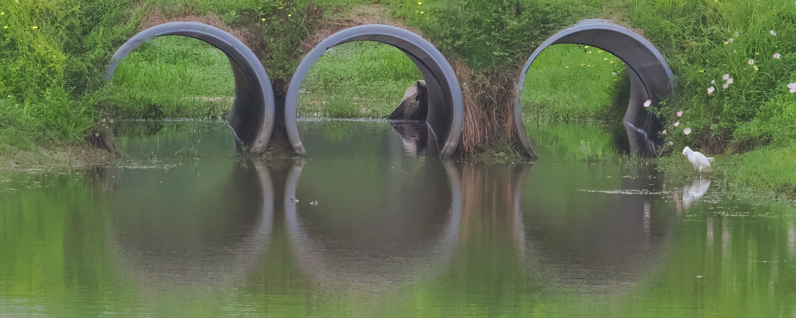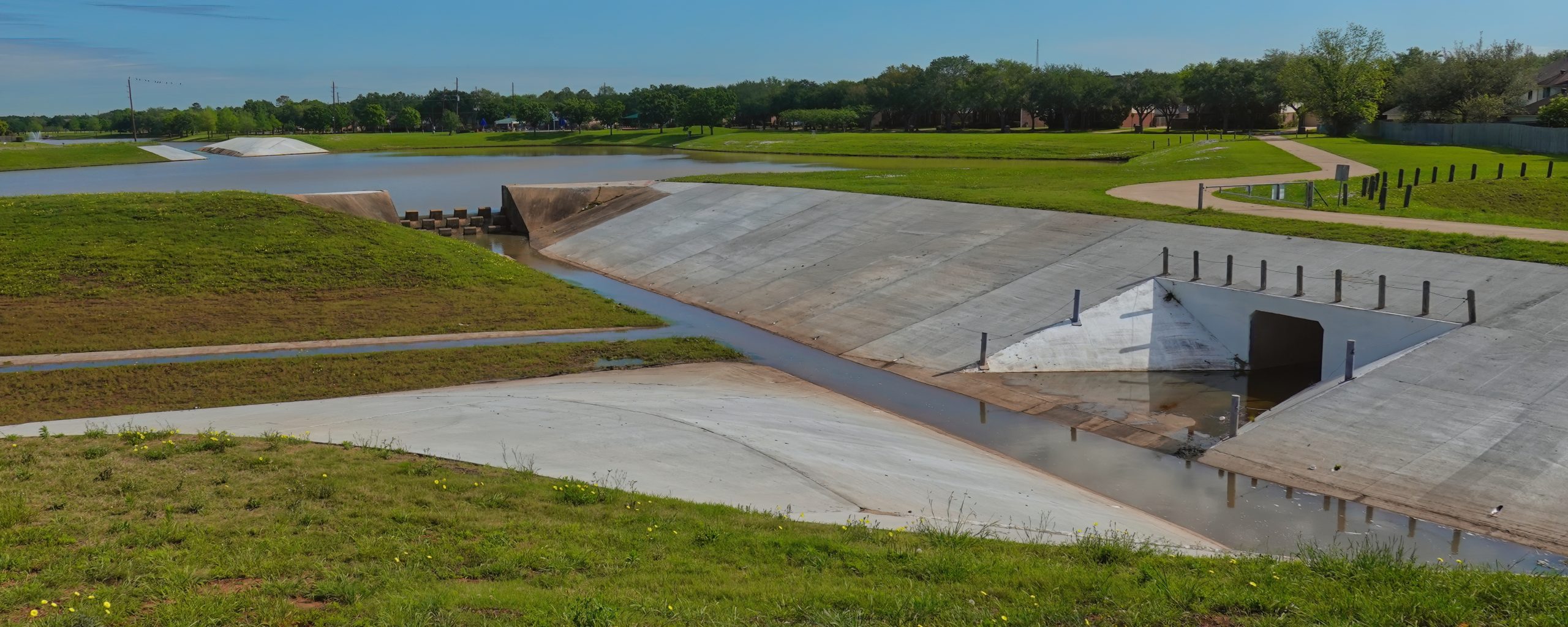 Culvert at one end of the ponds at Resoft County Park, Alvin, Texas. That