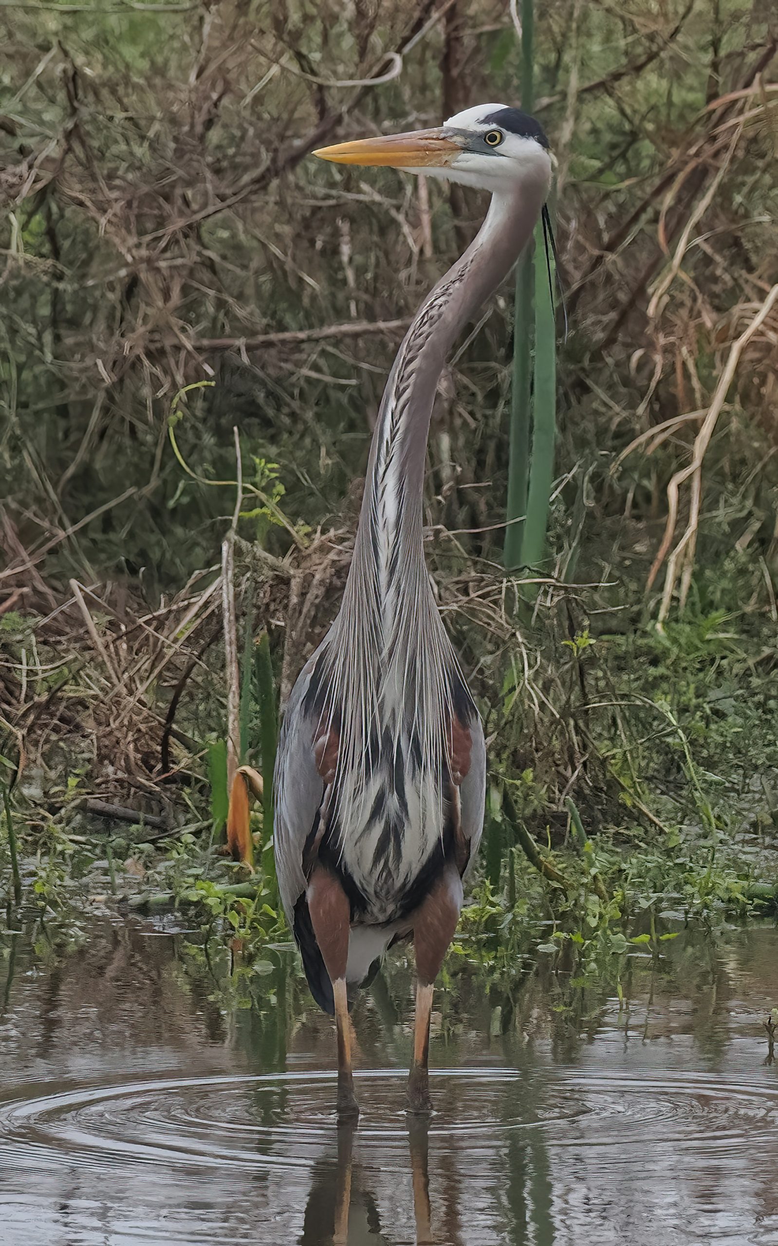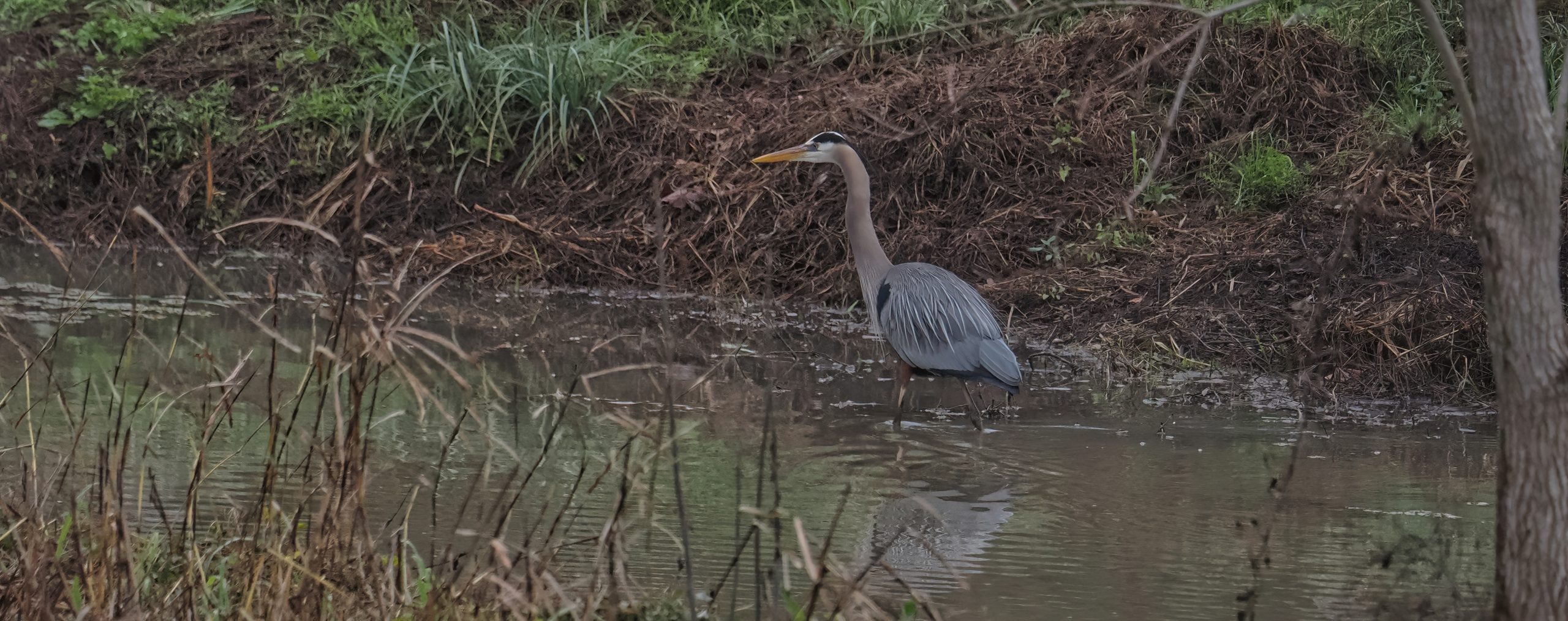 The appropriately named Steep Bank Creek originates in Oyster Creek more than 3 miles north as the Great Blue Heron flies, wends it way west, then east, passing by my subdivision 1 mile to the north where it drains Double Lake during heavy rains. It then flows on to Riverstone Wetlands where this photo was taken, then south for 4 more miles as that Heron flies where it joins the Brazos River, which flows into the Gulf of Mexico. That
