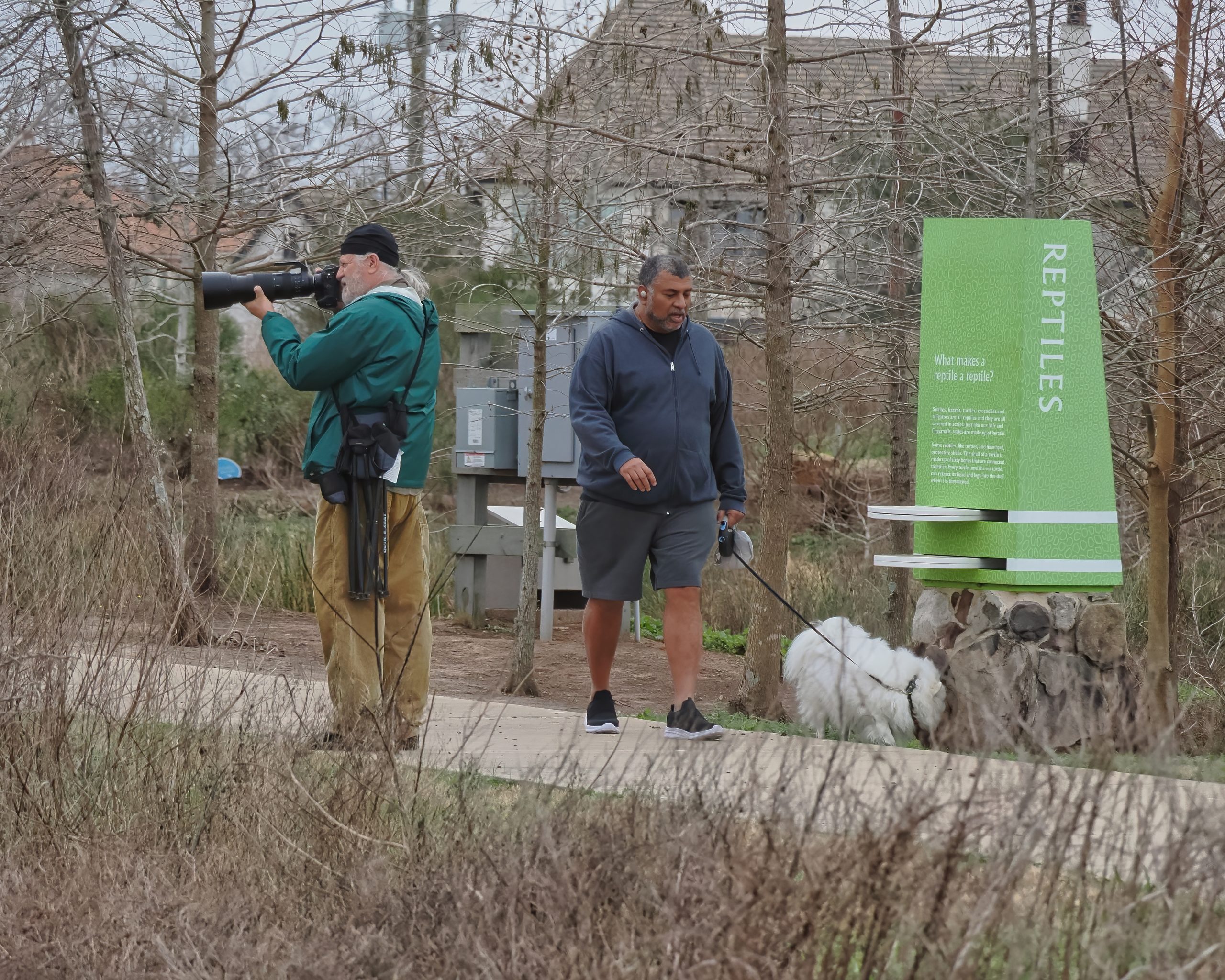 Been reading books and watching videos on street and travel photography in anticipation of cruising around Italy this summer where birds are likely to be scarce in the cities. This is as close as one can get to the street in Riverstone Wetlands, that is, another photographer and a guy talking on his cell phone while walking his dog. Notice the white plastic waste bag in the dog walker