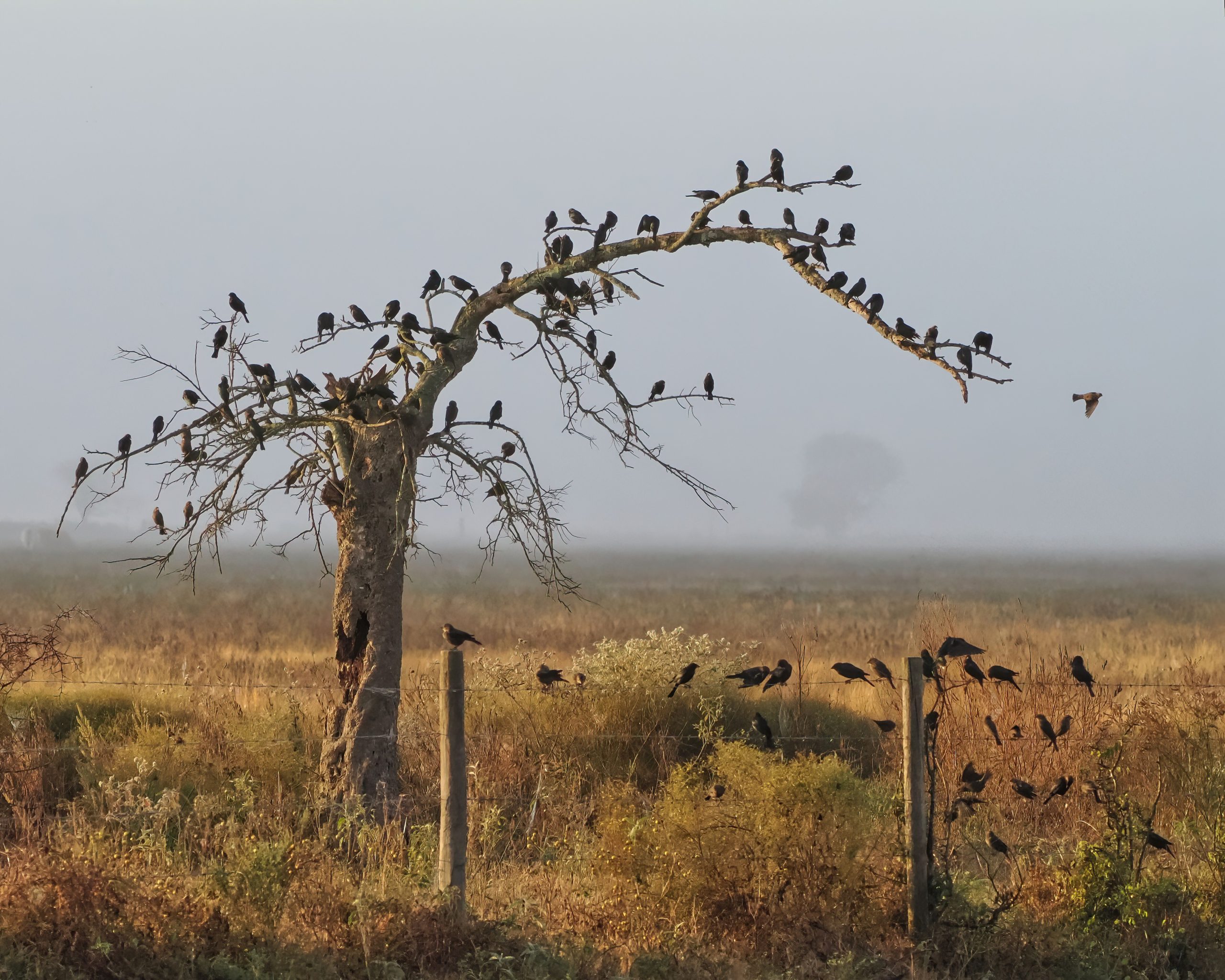 Cow birds are all over the place. Darst Road, Beasley, Texas.