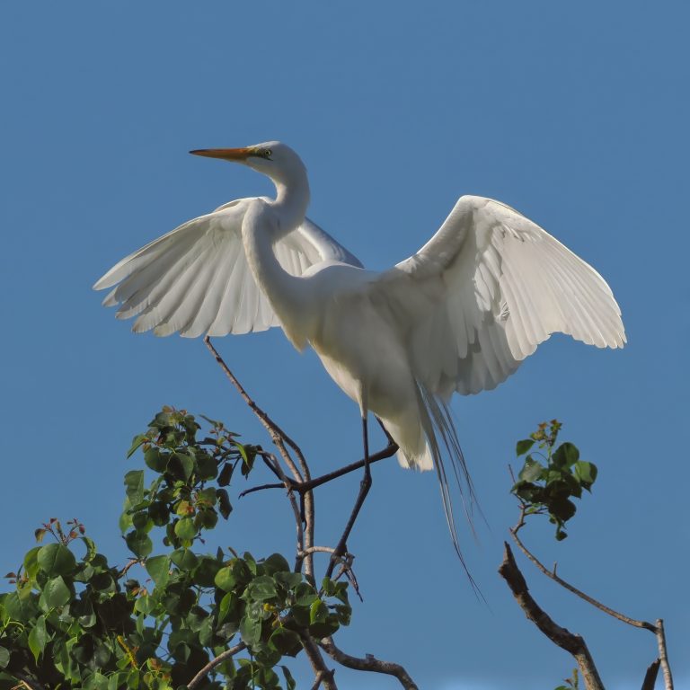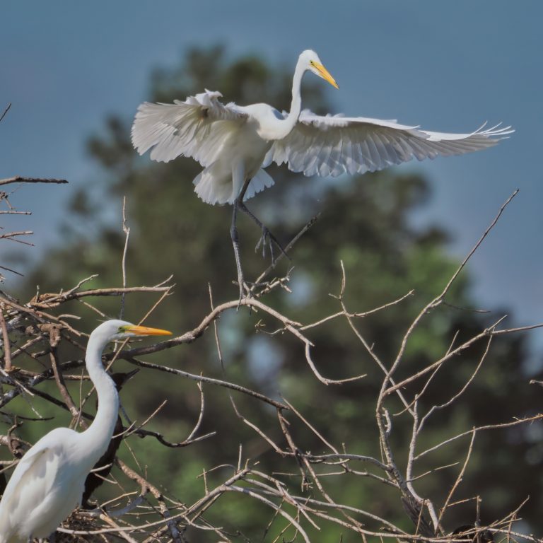 Great Egret finding a place in the rookery at Resoft County Park, Alvin, Texas.