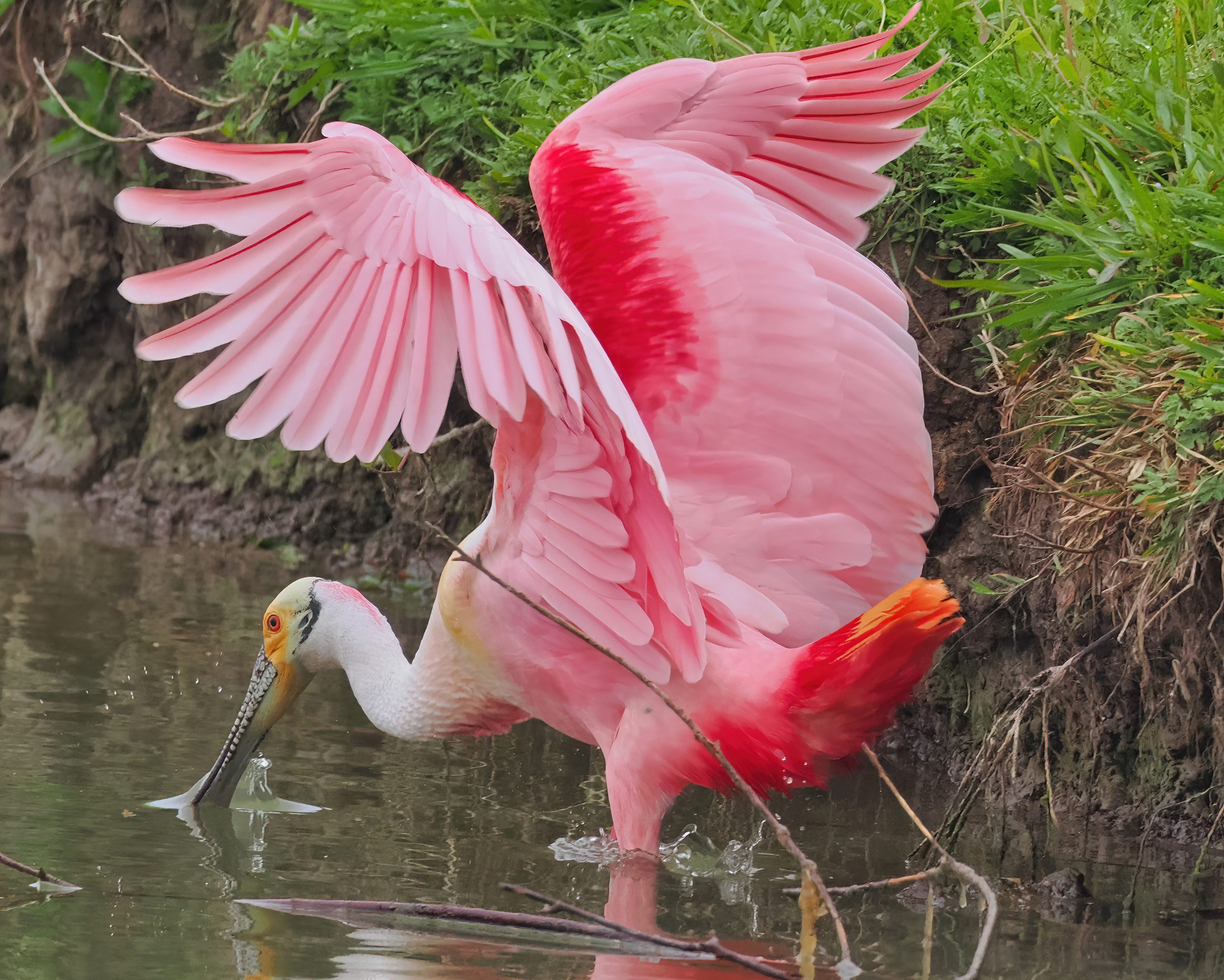 Roseate Spoonbill having a drink of H2O. Notice the filigree pattern on the bird